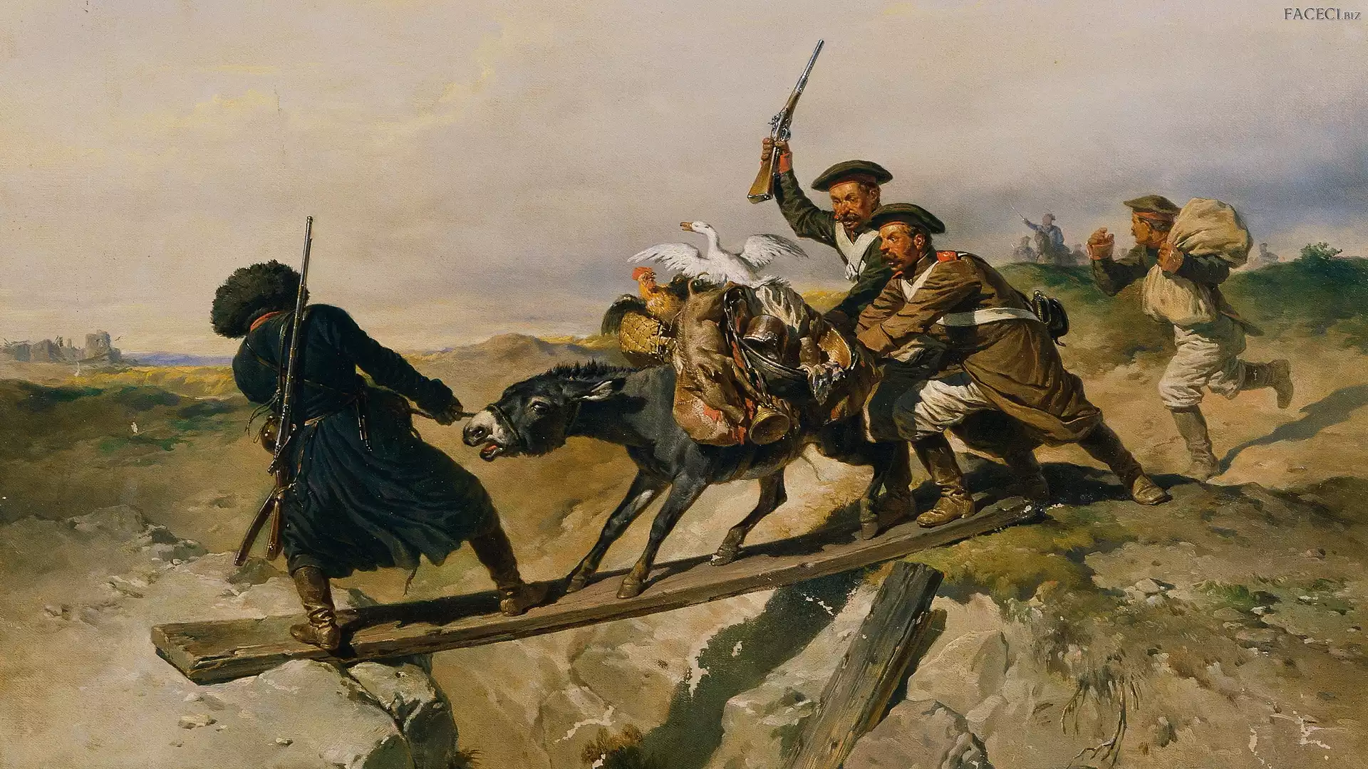 | Wojna, Josef Anton Rhinestone Gschwandtner, Malarstwo, Zwierzęta, Ucieczka, Obraz, Żołnierze - faceci.biz |